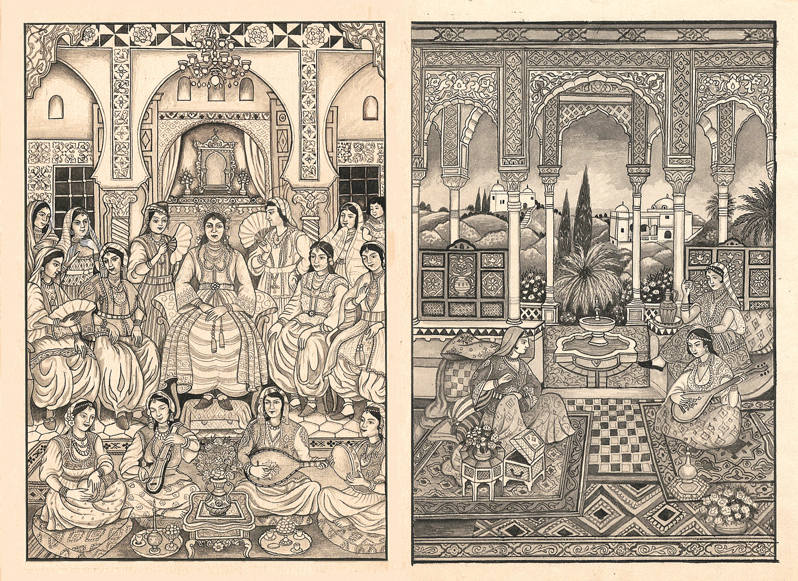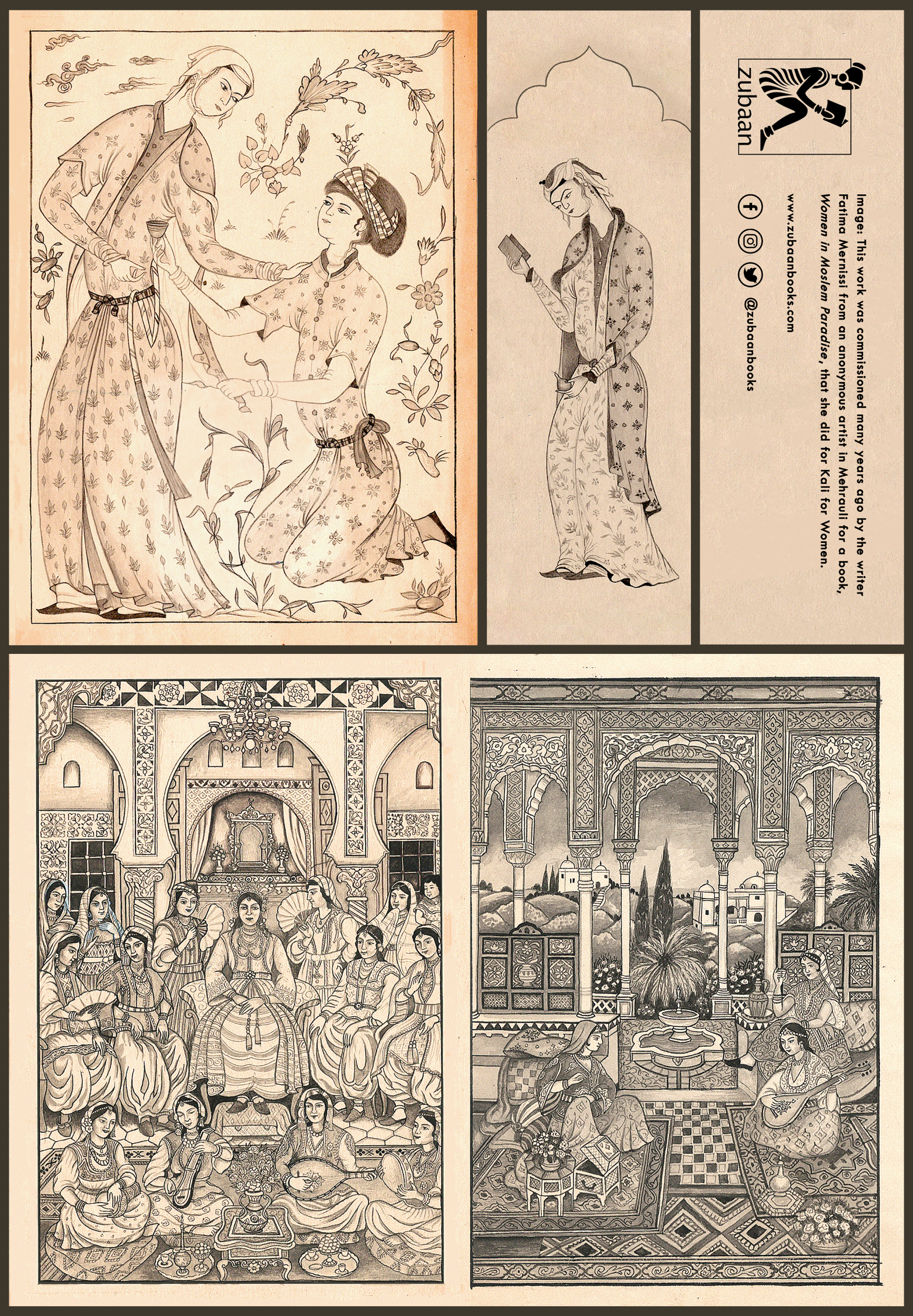 These works were commissioned many years ago by the write Fatima Mernissi from an anonymous artist in Mehrauli for a book, Women in Moslem Paradise, that she did for Kali for Women.